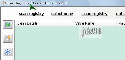 界面上方的英文軟件的名字,free registry cleaner for vista,我們來把它改為中文名稱。見圖:
