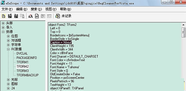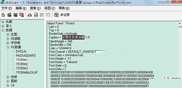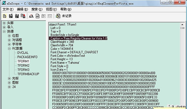 打開漢化工具,點擊文件--打開--《選擇我們軟件regcleanerforvista》程序,出現下圖: