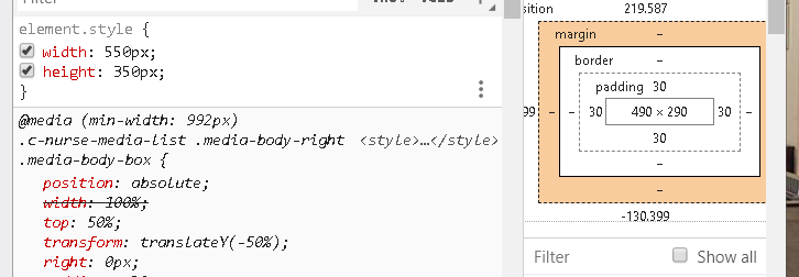 看element.style 我增加了偶數寬高,自己慢慢試,讓右邊那個490x290 沒有小數點出現就好了!