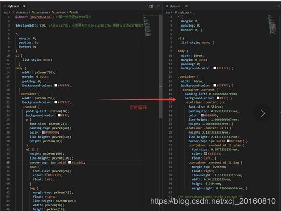 同時打開style.css,可以看到,style.scss文件上的內(nèi)容會實(shí)時編譯到style.css'